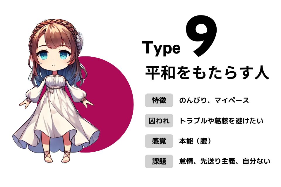 タイプ9の人間関係について、以下のようにまとめました。